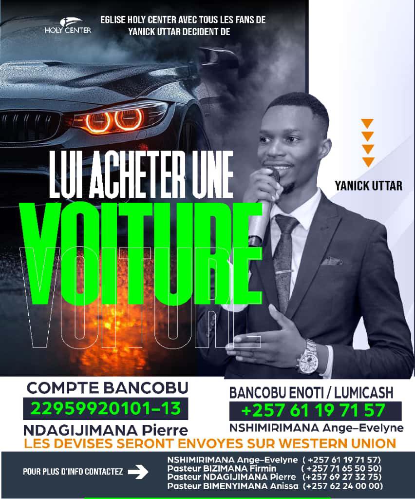 Yannick Utter yoba agiye kuronka kakaduga Prophet Joshua yavuga?Ishengero rya Holly Center rirongowe na Apotre Jean Paul Manirakiza rihejeje gufata ingingo yo gusohora icapa gihamagarira abakunzi ba Yannick Utter ko bomugurira imodoka mu ntumbero yo gushigikira impano yiwe no kumworohereza mw’ibango ryiwe.